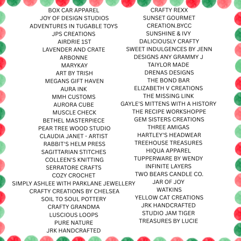 Please join us to support 30 local vendors each week, who sell a variety of gifts, goodies, and the perfect gifts for someone special for this Festive Holiday!
