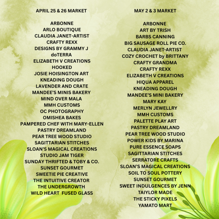 Please join us to support 30 local vendors each market, who sell a variety of gifts, goodies, and the perfect gifts for someone special for all occasions!